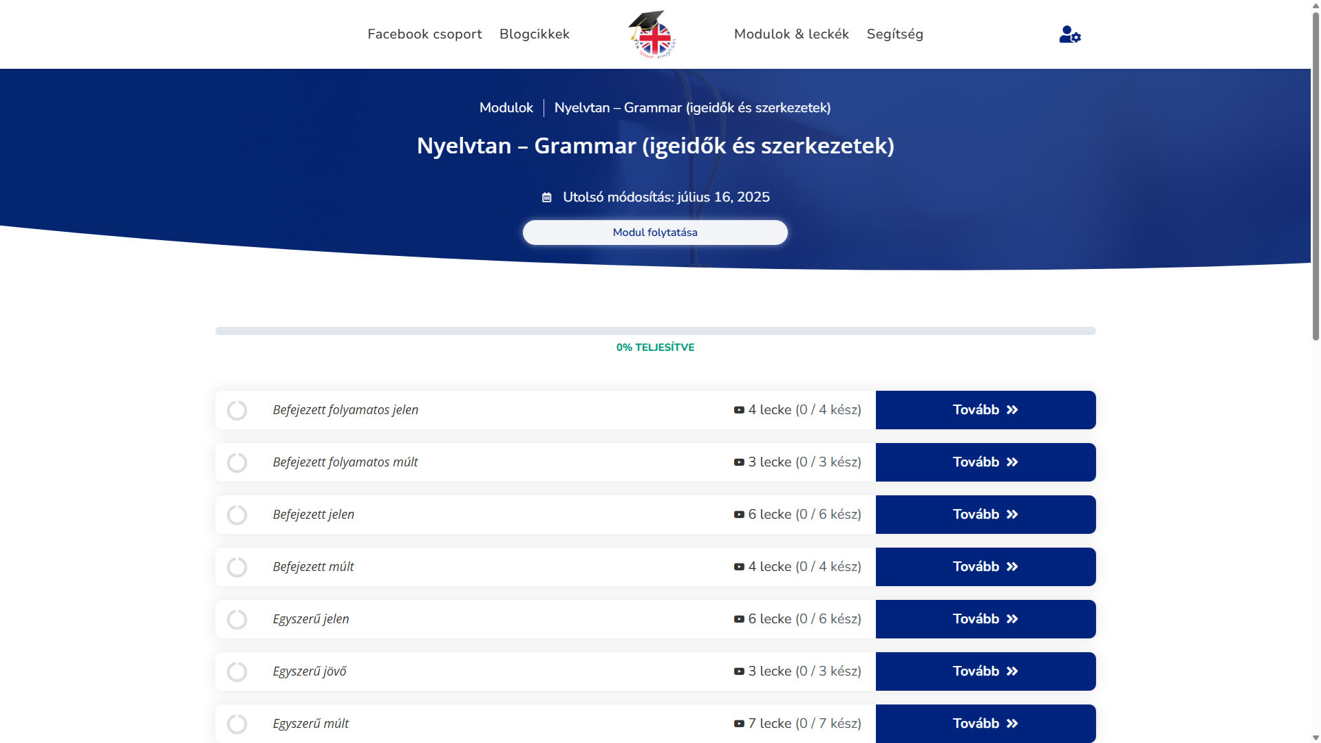 A Tanulói Klub Grammar modulja dedikáltan az angol nyelvtannal foglalkozik. Itt rengeteg videós anyagot, segédletet és gyakorló feladatot találsz majd, melyekkel a gyakorlatban használható nyelvtani ismereteket szerezhetsz.